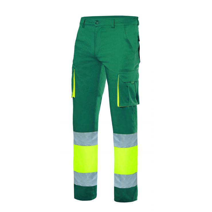 Calças 65% Poliéster, 35% algodão,240gr/m2.Tecido em sarja. Cintura com elástico traseiro. Dois bolsos oblíquos em cintura e nos laterais dois bolsos de fole com tapeta e puxador. Dois bolsos traseiros com fecho em velcro. Combina com a coleção Thunder (polo, sweatshirts e colete). Costuras reforçadas.Disponível do S ao XXL. Disponível nas cores: Azul marinho , Verde maçã , Verde Kelly , Amarelo limão , Vermelho lotto , Azul porto , Cinza e Laranja