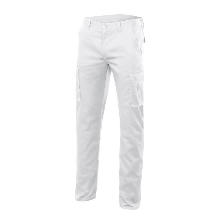 Pólo Branco de 100% algodão piqué com gramagem de 180-190 g/m². Dois botões, ribe nas mangas e tapa costuras reforçadas.