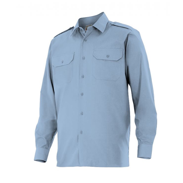 Camisa de manga comprida para personalizar. Disponível em várias cores. 2 bolsos de remendo, com pala e botão.