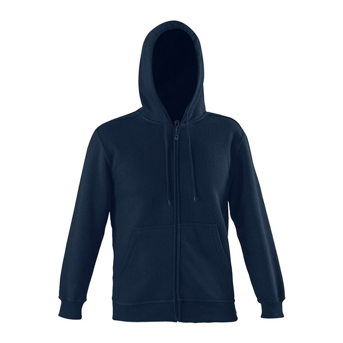 Sweatshirt de Adulto com Fecho com capuz duplo. Têm bolsos frontais. Costuras laterais, punhos e cinta elásticos.