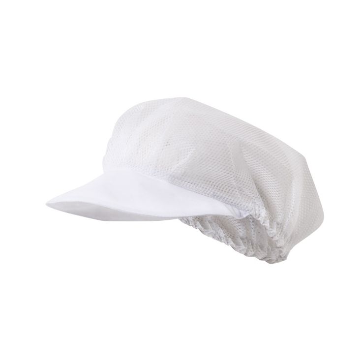 Touca mulher com rede para personalizar. Disponível em várias cores. Zona elástica por toda a touca. Transpirável.