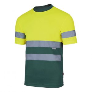 Colete acolchoado bicolor alta visibilidade para personalizar. Pala central com fecho de velcro. Forro polar no interior da gola.