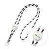 Lanyard tubular em terylene para personalizar, ajustável e mosquetão. Disponível numa combinação entre o branco e várias outras cores.