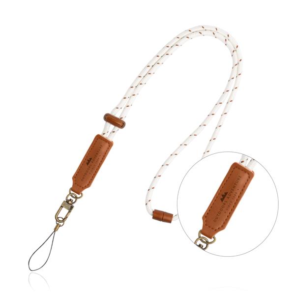 Lanyard tubular em terylene para personalizar, ajustável e mosquetão. Disponível numa combinação entre o branco e várias outras cores.