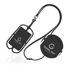 Lanyard em Silicone Lancy, com porta-cartões e suporte para smartphone. Mosquetão metálico. Disponível em várias cores.