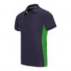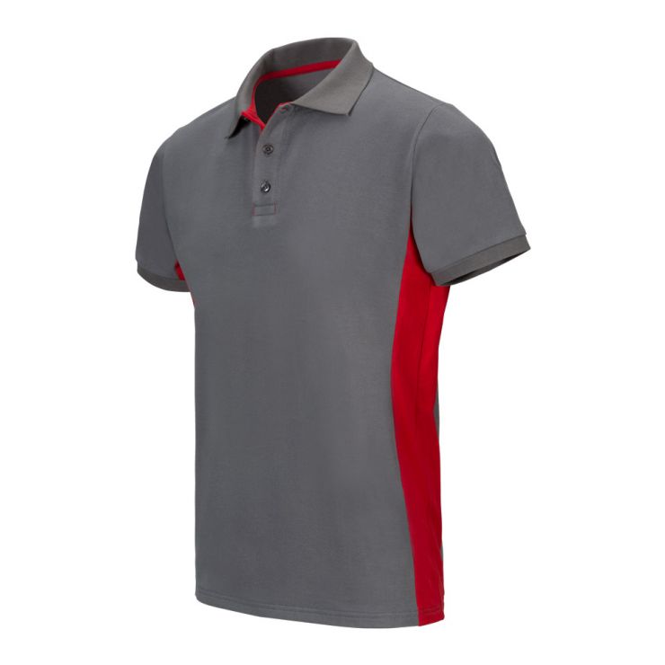 Polo de manga curta bicolor para personalizar. Disponível em várias cores. Fecho central com botões. Inclui bolso de remendo solto.