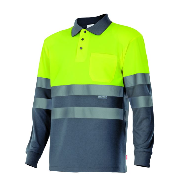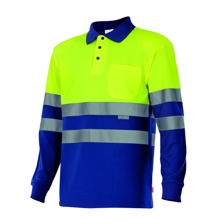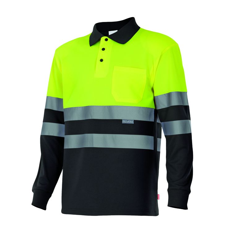 Pólo bicolor alta visibilidade de manga comprida ML AV para personalizar. Tamanho XS-3XL. Disponível em várias cores.