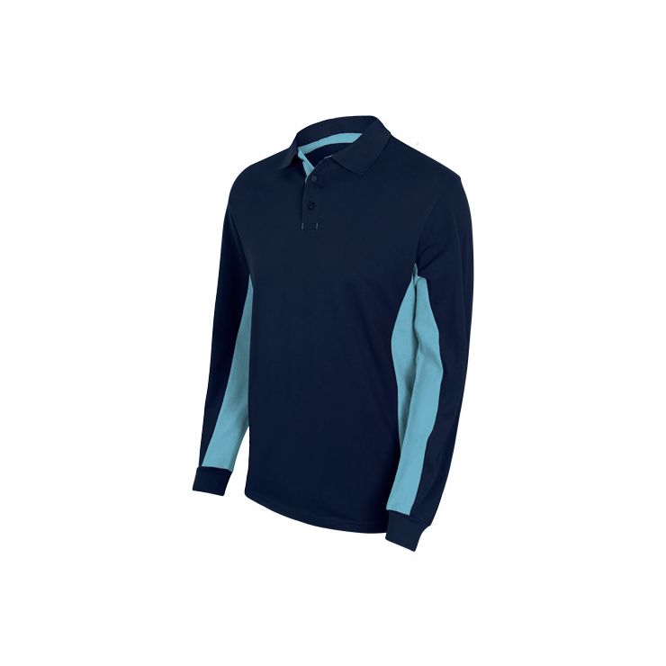 Polo de manga curta comprida bicolor ML para personalizar. Disponível em várias cores. Gola e punhos de malha canelada.