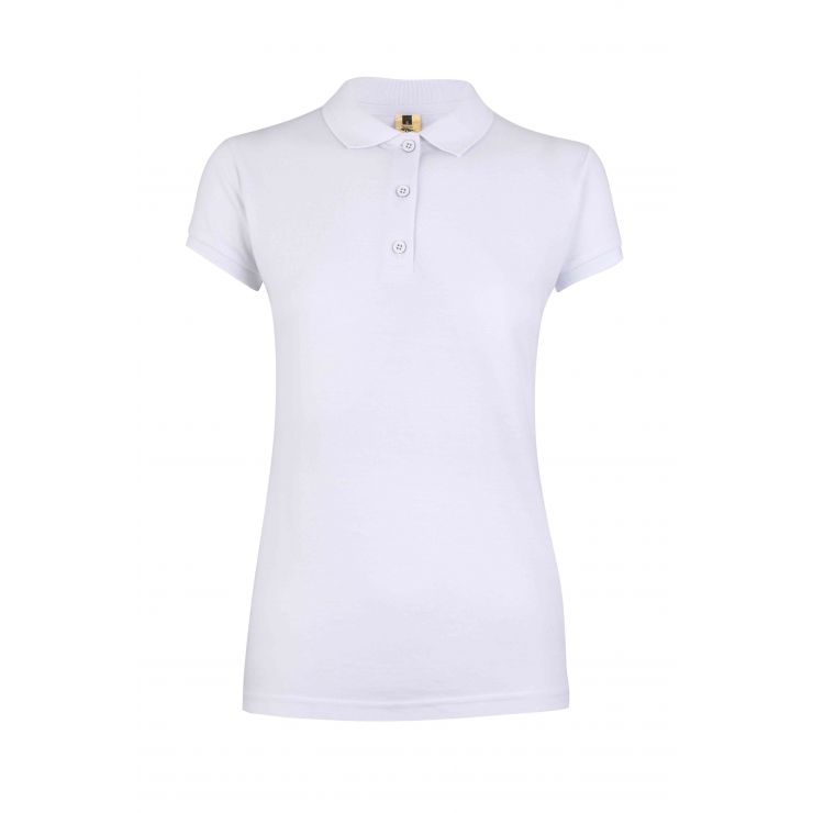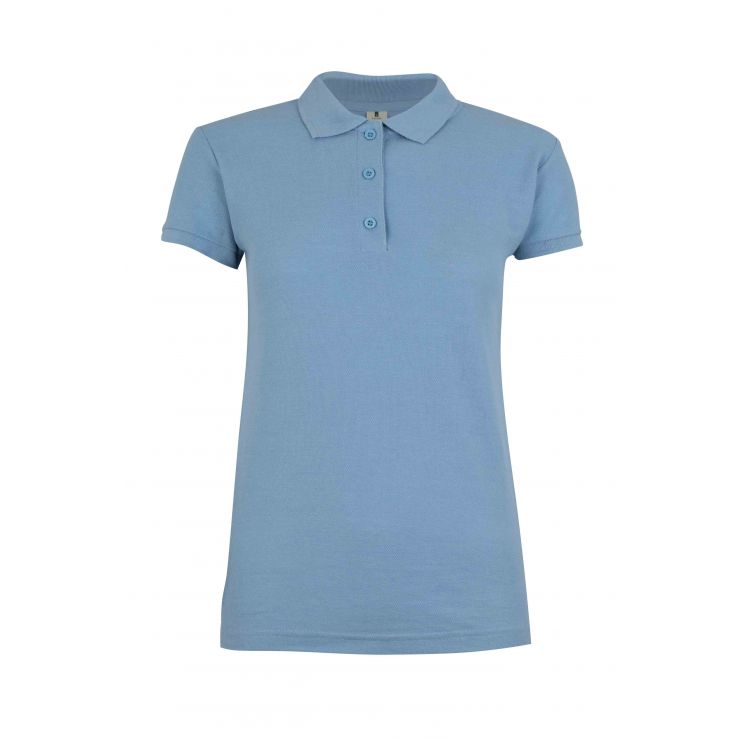 Polo manga curta mulher NOBBY para personalizar. Disponível em várias cores. Tapa costuras reforçada na gola para evitar deformação.