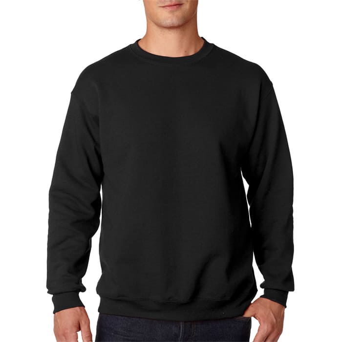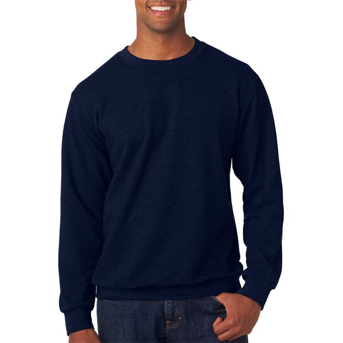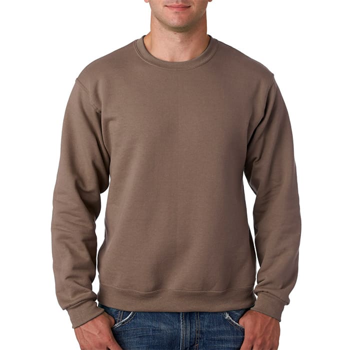 Sweatshirt sem Capuz de Adulto de malha cardada. Com costuras duplas na gola, mangas, ombros e cinta. Punhos e cinta elásticos.