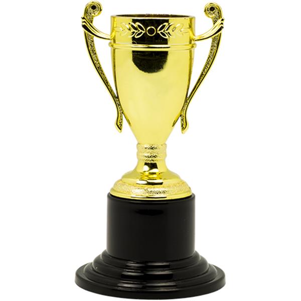 Mini Troféu/medalha em plástico para personalizar. Disponível apenas em dourado.