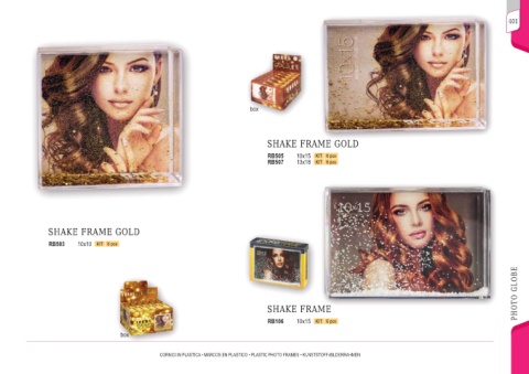 401 box SHAKE FRAME GOLD RB505 10x15 KIT 6 pcs RB507 13x18 KIT 6 pcs SHAKE FRAME GOLD RB503 10x10 KIT 6 pcs PHOTO GLOBE SHAKE FRAME RB106 10x15 KIT 6 pcs box CORNICI IN PLASTICA • MARCOS EN PLASTICO • PLASTIC PHOTO FRAMES • KUNSTSTOFF-BILDERRAHMEN