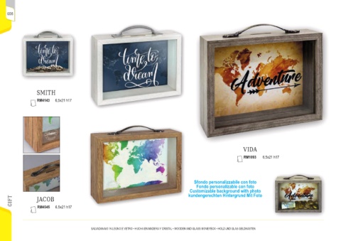 SALVADANAIO IN LEGNO E VETRO • HUCHA EN MADERA Y CRISTAL • WOODEN AND GLASS MONEYBOX • HOLZ-UND GLAS GELDKASTEN