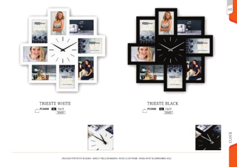 415 TRIESTE WHITE TRIESTE BLACK PC008W 8x 10x15 PC008B 8x 10x15 50x50 50x50 CLOCK OROLOGIO PORTAFOTO IN LEGNO • MARCO Y RELOJ EN MADERA • WOOD CLOCK FRAME • WANDUHR MIT BILDERRAHMEN, HOLZ