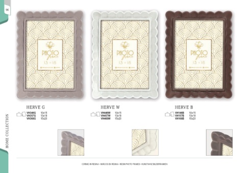 96 HERVE G HERVE W HERVE B VH346G 10x15 VH446W 10x15 VH146B 10x15 VH457W VH357G VH157B 13x18 13x18 13x18 HOME COLLECTION VH368G VH168B VH468W 15x20 15x20 15x20 CORNICI IN RESINA • MARCOS EN RESINA • RESIN PHOTO FRAMES • KUNSTHARZ BILDERRAHMEN