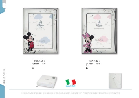 112 MICKEY 1 MINNIE 1 DI2204 10x15 DI2205 10x15 SILVER PLATED box Made in Italy CORNICI SILVER PLATED RETRO IN LEGNO • MARCOS EN SILVER CON TAPA TRASERA EN MADERA • SILVER PLATED PHOTO FRAMES WITH WOODEN BACK • VERSILBERTER RAHMEN MIT HOLZRÜCKEN