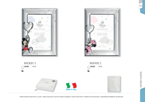 113 MICKEY 2 MINNIE 2 DI2266 10x15 DI2269 10x15 SILVER PLATED box Made in Italy CORNICI SILVER PLATED RETRO IN LEGNO • MARCOS EN SILVER CON TAPA TRASERA EN MADERA • SILVER PLATED PHOTO FRAMES WITH WOODEN BACK • VERSILBERTER RAHMEN MIT HOLZRÜCKEN
