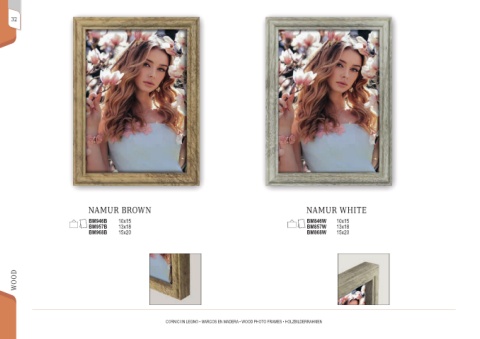 32 NAMUR BROWN NAMUR WHITE BM946B 10x15 BM846W 10x15 BM957B 13x18 BM857W 13x18 BM968B 15x20 BM868W 15x20 WOOD CORNICI IN LEGNO • MARCOS EN MADERA • WOOD PHOTO FRAMES • HOLZBILDERRAHMEN