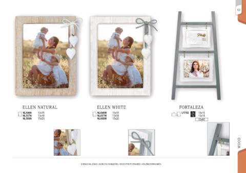 43 ELLEN NATURAL ELLEN WHITE FORTALEZA NL546N 10x15 NL646W 10x15 UT792 1x 10x15 NL557N 13x18 NL657W 13x18 1x 13x18 NL568N 15x20 NL668W 15x20 33x60 WOOD CORNICI IN LEGNO • MARCOS EN MADERA • WOOD PHOTO FRAMES • HOLZBILDERRAHMEN