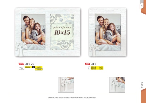 75 LIFE 2Q LIFE XD8224 2x 10x15 XD8246 10x15 25x19 XD8257 13x18 WOOD CORNICI IN LEGNO • MARCOS EN MADERA • WOOD PHOTO FRAMES • HOLZBILDERRAHMEN