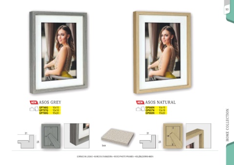 93 ASOS GREY ASOS NATURAL GP746G 10x15 GP646N 10x15 GP757G 13x18 GP657N 13x18 HOME COLLECTION GP768G 15x20 GP668N 15x20 31 31 25 25 box CORNICI IN LEGNO • MARCOS EN MADERA • WOOD PHOTO FRAMES • HOLZBILDERRAHMEN