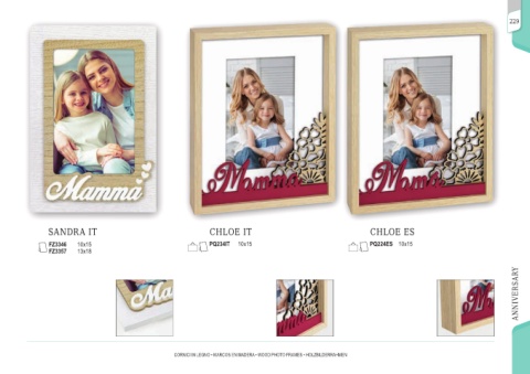 229 SANDRA IT CHLOE IT CHLOE ES FZ3346 10x15 PQ234IT 10x15 PQ224ES 10x15 FZ3357 13x18 ANNIVERSARY CORNICI IN LEGNO • MARCOS EN MADERA • WOOD PHOTO FRAMES • HOLZBILDERRAHMEN