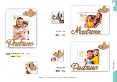 255 MADRINA MN7146 10x15 MN7157 13x18 PADRINO VERTICAL MN8546 10x15 ANNIVERSARY PADRINO MN7746 10x15 MN7757 13x18 CORNICI IN LEGNO • MARCOS EN MADERA • WOOD PHOTO FRAMES • HOLZBILDERRAHMEN