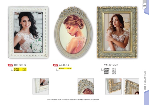 157 HIBISCUS AZALEA VALBONNE KF2657 13x18 KF2857 13x18 EM6946 10x15 KF2668 15x20 EM6957 13x18 EM6968 15x20 IBIS COLLECTION EM6981 20x25 CORNICI IN RESINA • MARCOS EN RESINA • RESIN PHOTO FRAMES • KUNSTHARZ BILDERRAHMEN