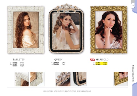 159 SABLETES QUEEN MARIGOLD EE5946 10x15 EM6546 10x15 KF3457 13x18 EE5957 13x18 EM6568 15x20 KF3468 15x20 EE5968 15x20 IBIS COLLECTION CORNICI IN RESINA • MARCOS EN RESINA • RESIN PHOTO FRAMES • KUNSTHARZ BILDERRAHMEN