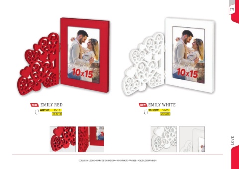 171 EMILY RED EMILY WHITE WH338R 10x15 WH339W 10x15 25,5x18 25,5x18 LOVE CORNICI IN LEGNO • MARCOS EN MADERA • WOOD PHOTO FRAMES • HOLZBILDERRAHMEN