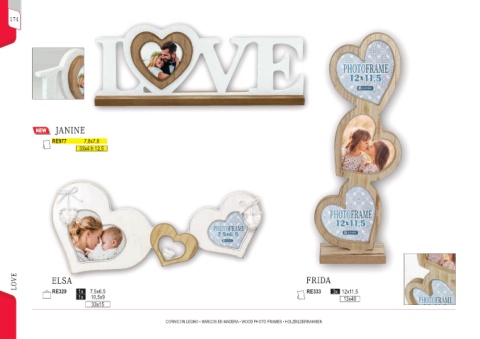 174 JANINE RE977 7,8x7,8 33x4 h 12,5 LOVE ELSA FRIDA 1x RE329 10,5x9 1x 7,5x6,5 RE333 3x 12x11,5 13x40 33x15 CORNICI IN LEGNO • MARCOS EN MADERA • WOOD PHOTO FRAMES • HOLZBILDERRAHMEN