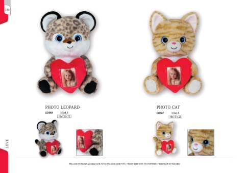 180 PHOTO LEOPARD PHOTO CAT DD569 3,5x4,5 DD567 3,5x4,5 16x13 h 23 16x13 h 23 LOVE PELUCHE PERSONALIZZABILE CON FOTO • PELUCHE CON FOTO • TEDDY BEAR WITH PHOTOFRAME • TEDDYBÄR MIT RAHMEN