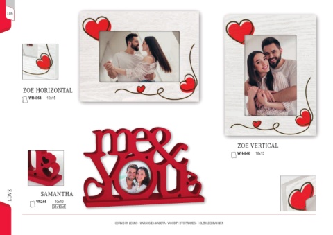 186 ZOE HORIZONTAL WH4964 10x15 ZOE VERTICAL WH4846 10x15 LOVE SAMANTHA VR244 10x10 31x19x5 CORNICI IN LEGNO • MARCOS EN MADERA • WOOD PHOTO FRAMES • HOLZBILDERRAHMEN