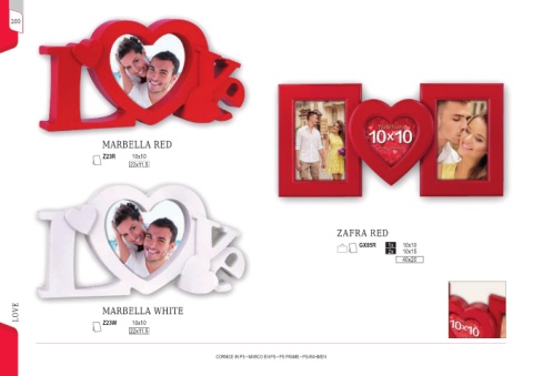 200 MARBELLA RED Z23R 10x10 22x11,5 ZAFRA RED GX85R 1x 10x10 2x 10x15 40x20 LOVE MARBELLA WHITE Z23W 10x10 22x11,5 CORNICE IN PS • MARCO EN PS • PS FRAME • PS-RAHMEN