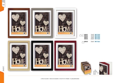 348 M6561 10x15 MIN 12 pcs M6562 13x18 MIN 12 pcs M6563 15x20 MIN 12 pcs M6564 20x30 MIN 12 pcs M6565 30x40 MIN 6 pcs BASIC 13 14 box CORNICI IN LEGNO • MARCOS EN MADERA • WOOD PHOTO FRAMES • HOLZBILDERRAHMEN