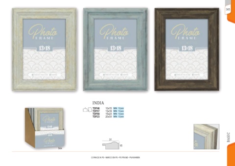 365 INDIA TDF46 10x15 MIN 12 pcs TDF57 13x18 MIN 12 pcs TDF68 15x20 MIN 12 pcs TDF23 20x30 MIN 12 pcs BASIC 31 15 box CORNICE IN PS • MARCO EN PS • PS FRAME • PS-RAHMEN