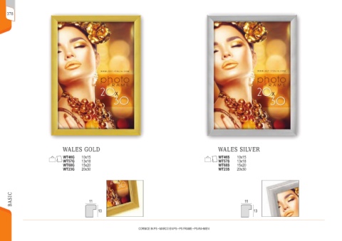 378 WALES GOLD WALES SILVER WT46G 10x15 WT46S 10x15 WT57G 13x18 WT57S 13x18 WT68G 15x20 WT68S 15x20 WT23G 20x30 WT23S 20x30 BASIC 11 11 13 13 CORNICE IN PS • MARCO EN PS • PS FRAME • PS-RAHMEN