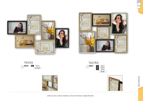 279 TIRANA VALONA BM996 6x 10x15 BM987 1x 10x10 50,5x33 4x 10x15 2 13x18 42x36 MULTIPLE CORNICI IN LEGNO • MARCOS EN MADERA • WOOD PHOTO FRAMES • HOLZBILDERRAHMEN