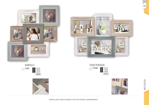 295 AIROLO VINCENNES TY381 2x 10x10 TY1449 3x 10x15 2x 10x15 2x 13x18 3x 13x13 1x 15x20 49x54 57x41 MULTIPLE CORNICI IN LEGNO • MARCOS EN MADERA • WOOD PHOTO FRAMES • HOLZBILDERRAHMEN