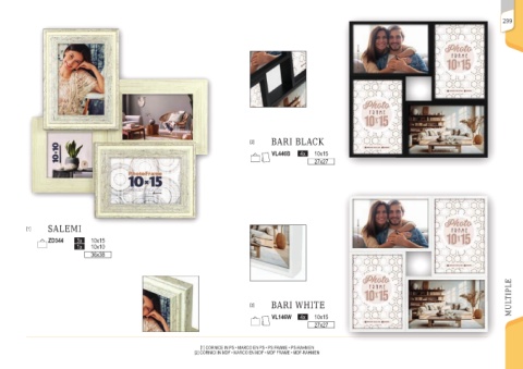 299 [2] BARI BLACK VL446B 4x 10x15 27x27 [1] SALEMI ZD344 3x 10x15 1x 10x10 36x38 MULTIPLE [2] BARI WHITE VL146W 4x 10x15 27x27 [1] CORNICE IN PS • MARCO EN PS • PS FRAME • PS-RAHMEN [2] CORNICI IN MDF • MARCO EN MDF • MDF FRAME • MDF-RAHMEN