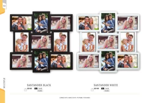 322 MULTIPLE SANTANDER BLACK SANTANDER WHITE 9x 13x18 XB14B 52x52 52x52 XB14W 9x 13x18 CORNICE IN PS • MARCO EN PS • PS FRAME • PS-RAHMEN
