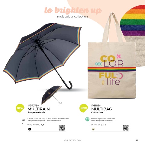 Guarda-chuva em pongee 190T, detalhe multi colourido Saco de algodão multicolourido