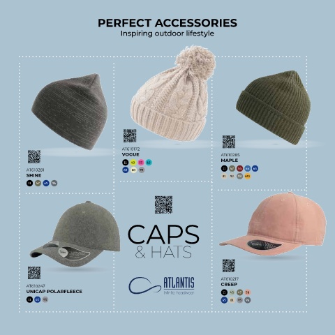 PERFECT ACCESSORIES Inspiring outdoor lifestyle AT610172 VOGUE AT610285 MAPLE 11 43 55 63 AT610281 65 80 95 11 47 54 64 65 SHINE 81 92 93 MO 11 47 65 96 CAPS & HATS AT610217 AT610247 CREEP UNICAP POLARFLEECE 11 43 47 58 11 65 95 65 81 95 96