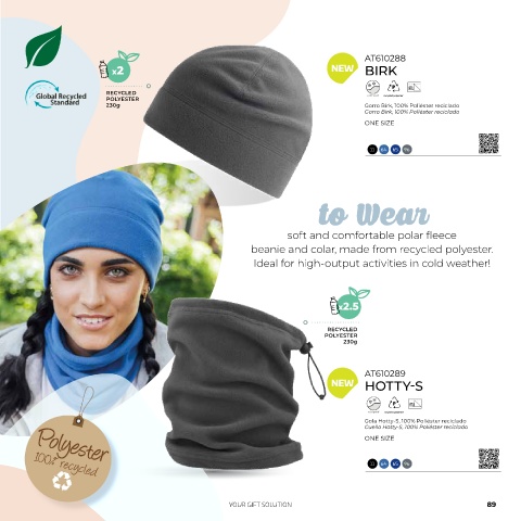 beanie and colar, made from recycled polyester.