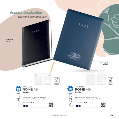 Agenda Diária A5 em Papel laminado Agenda Semanal A5+ em papel/PVC