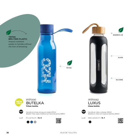 ml Garrafa em tritan, tampa em metal, 600ml ml Garrafa em vidro e silicone, 600ml