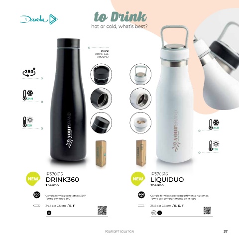 ml Garrafa térmica com tampa 360º ml Garrafa térmica com compartimento na tampa