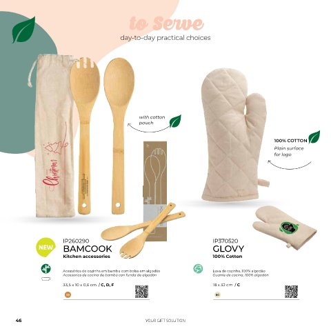 Acessórios de cozinha em bambu com bolsa em algodão Luva de cozinha, 100% algodão
