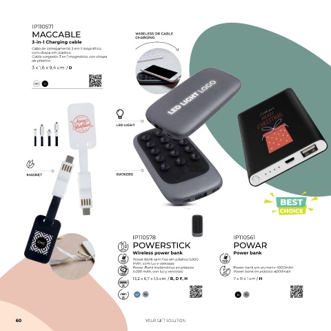 5.000 mAh, con luz y ventosas Power bank en plástico 4000mAh