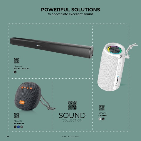 POWERFUL SOLUTIONS to appreciate excellent sound BP640014 SOUND BAR 60 11 SOUND BP640112 LEDIUM COLLECTION 00 11 BP640110 NEWFUSE 11 64 96 64 YOUR GIFT SOLUTION